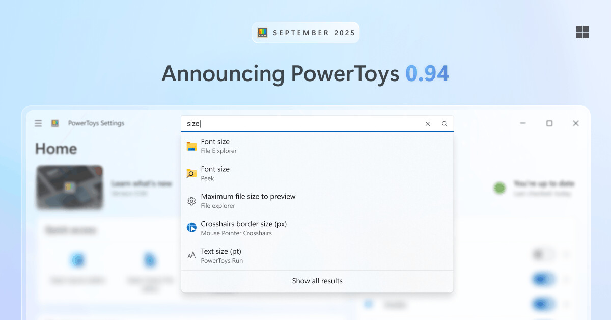 مایکروسافت بهتازگی نسخه 0.94 از مجموعه ابزار محبوب PowerToys را منتشر کرده است. این نسخه با سه قابلیت کلیدی همراه است: افزودن نوار جستوجو به صفحه تنظیمات، ابزار شناسایی تضاد میانبرهای صفحهکلید، و حالت جدید Gliding Cursor برای کنترل دقیقتر نشانگر ماوس. در ادامه، جزئیات کامل این بهروزرسانی را مرور میکنیم.