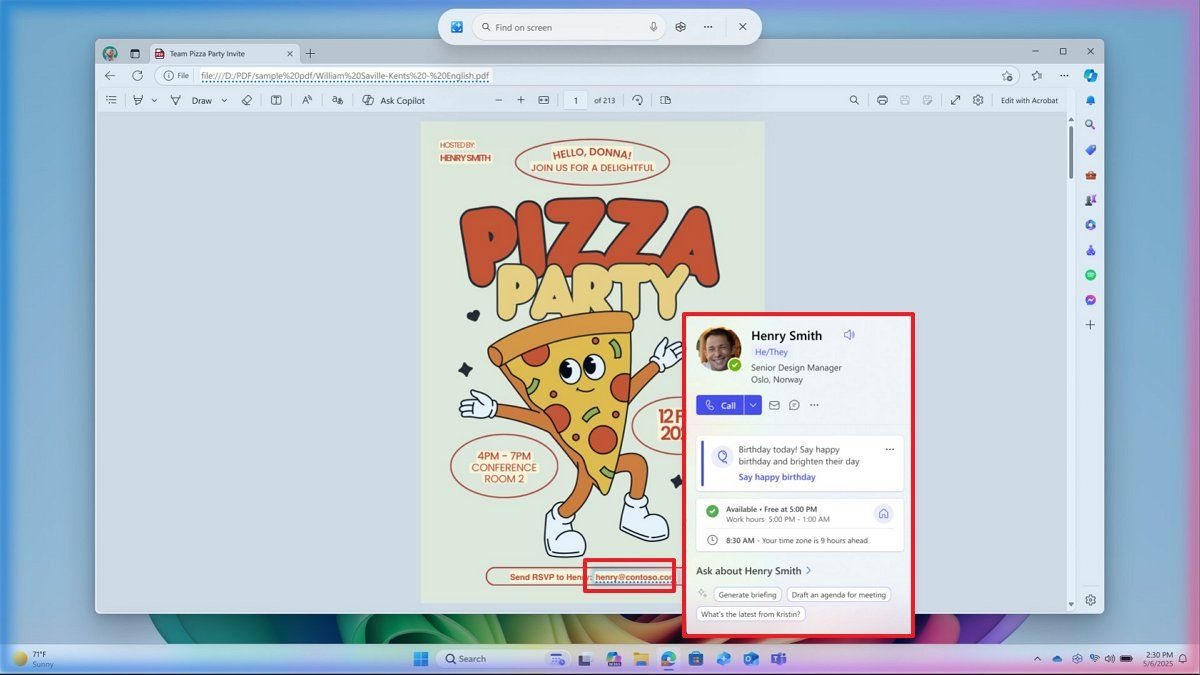 - نمایش کارت پروفایل Microsoft 365: نمایش اطلاعات تماس فرد هنگام قرار گرفتن نشانگر روی ایمیل یا آیتم مشابه
