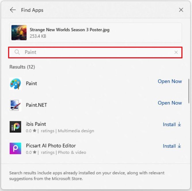 اگر اپ مورد نظر روی رایانه نصب نباشد، این اعلان گزینهای برای نصب آن از Microsoft Store ارائه میدهد.
