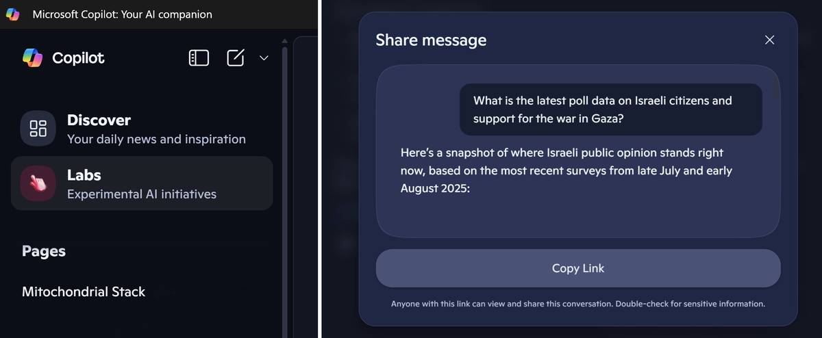ویژگی بعدی، پنجرهی گفت و گو های اخیر کوپایلت است که دسترسی سریع به پرسشهای قبلی را فراهم میکند. بهعلاوه، برخی قابلیتهای آزمایش، از جمله بازگشت دکمهی اشتراکگذاری و فعالشدن حافظهی شخصیسازیشده در نسخهی جدید دیده میشوند.